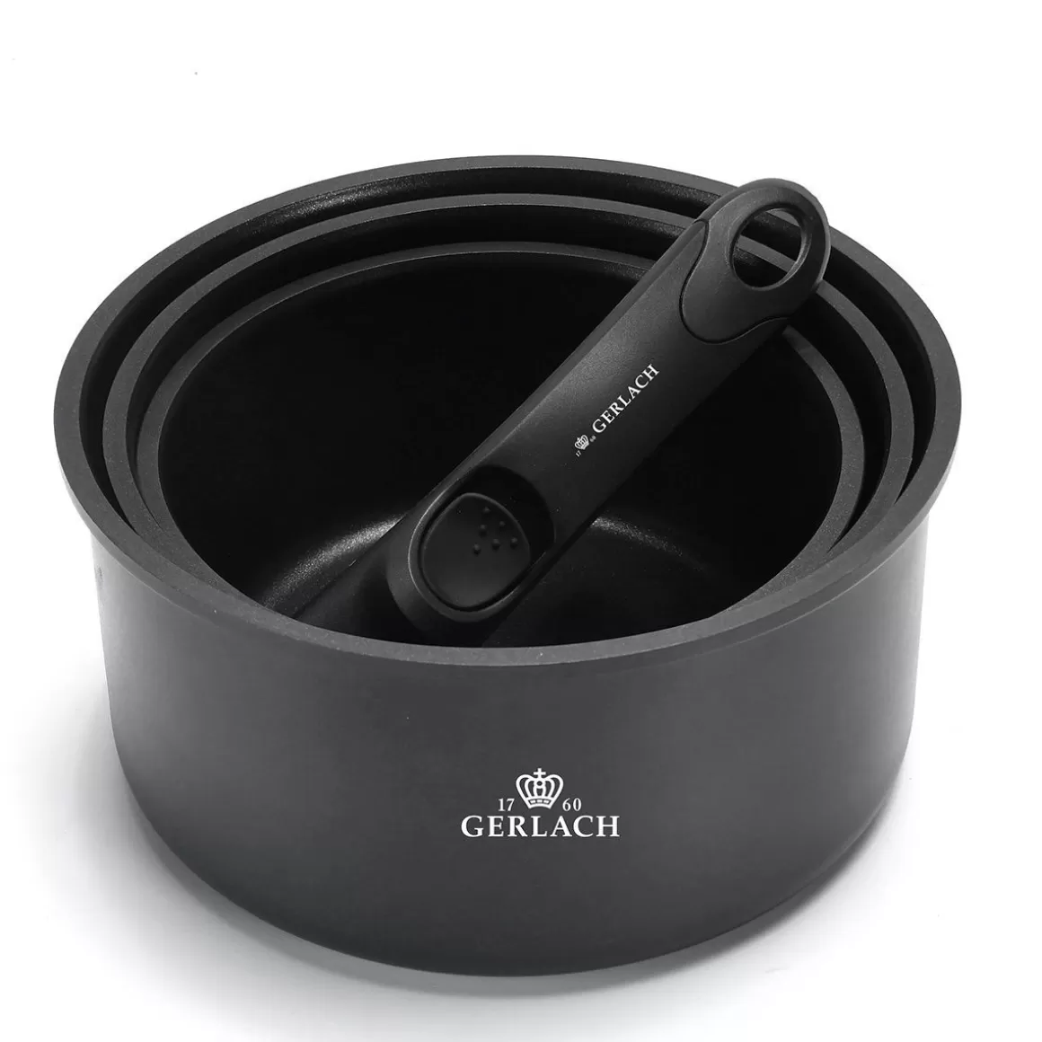 Komplet Smart Składa Się Z 4 Elementów: 3 Garnków O Różnej Pojemności I Wielkości Oraz Uniwersalnej Rączki. Zestaw Zaprojektowano W Czarnym Matowym Kolorze, Którym Pokryto Aluminiową Podstawę. Rączkę Wyprofilowano W Taki Sposób, Aby W Bezpieczny I Wygodny Sposób Można Było Ją Chwycić, Szczególnie Gdy Naczyńie Będzie Gorące. Rozmiar Garnków Pozwala Na Włożenie Ich W Siebie, Przez Co Można Znacznie Ograniczyć Powierzchnię Jaką Zajmują.Materiał