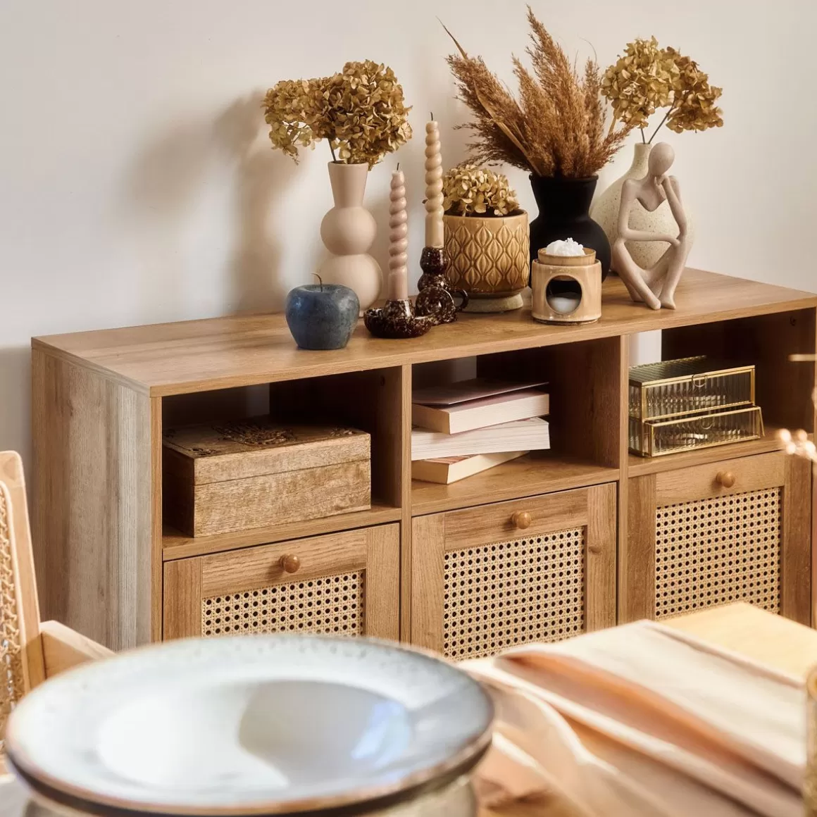 Komoda Do Salonu Z Rattanowymi Drzwiczkami