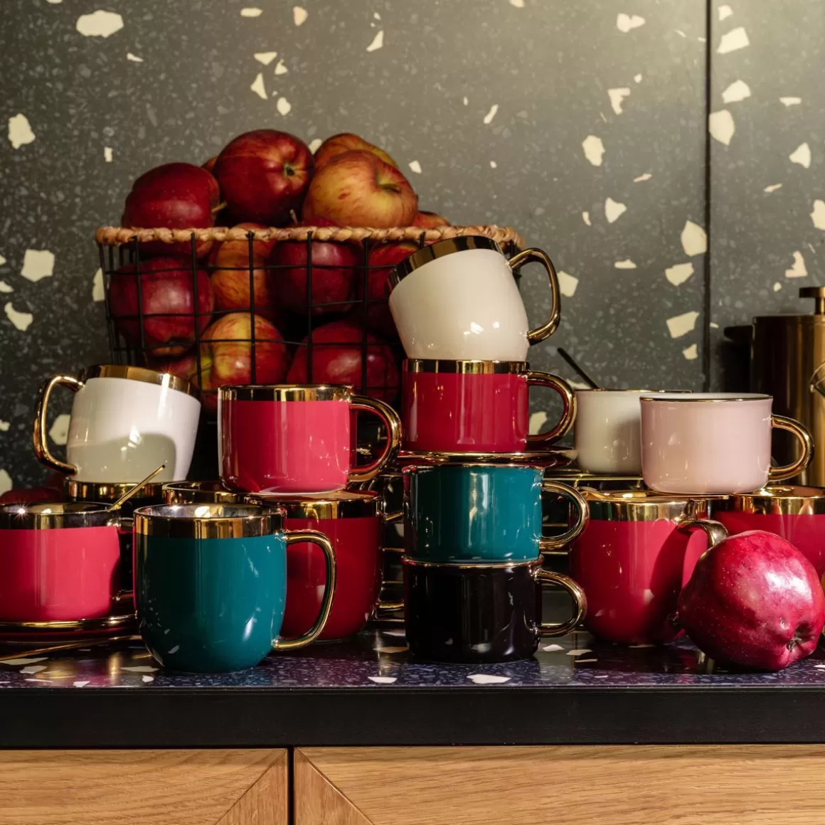 Kubek Czarny Sinnes Zachwyca Swoją Wyważoną Prostotą, A Jednocześnie Funkcjonalnością, Co Wspólnie Tworzy Niezwykle Piękną I Elegancką Całość. Każdy Kubek Jest Wyjątkowy, Ze Względu Na Ręczne Malowanie, Co Może Wpłynąć Na Niejednakowe Złote Zdobienie Na Różnych Kubkach. Ze Względu Na Piękny Design Będzie Idealny Jako Prezent Niezależnie Od Okazji.Cechy Charakterystyczne