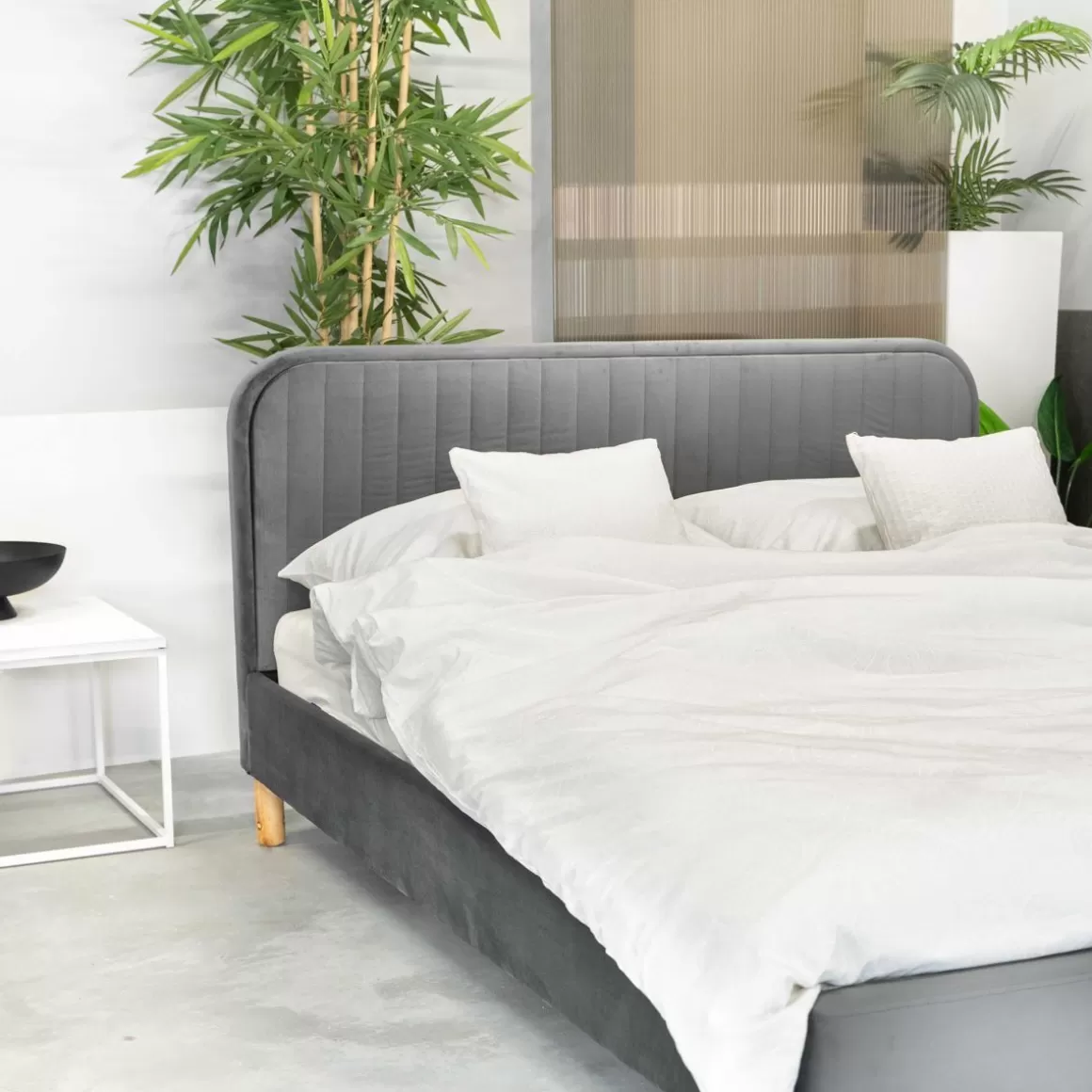 Łóżko Karalius W Szarym Kolorze Doskonale Rozświetli Sypialnię Lub Stonuje Żywe Kolory. Mebel To Idealna Alternatywa Dla Sypialni W Stylu Glamour, Eleganckim, Eklektycznym Oraz Nowoczesnym.Cechy Charakterystyczne