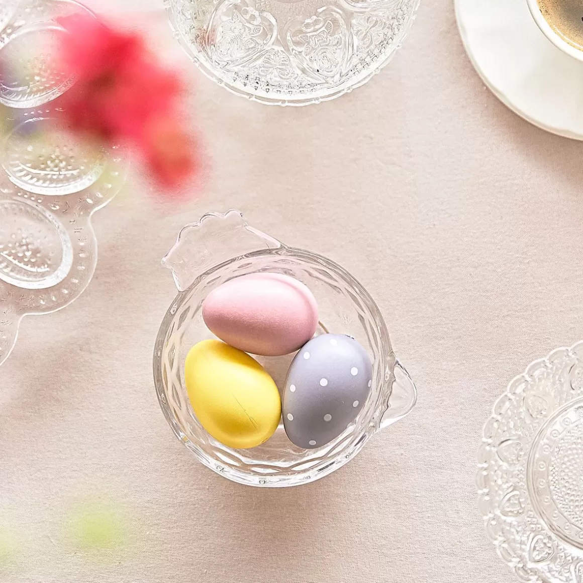 Opis ProduktuOryginalny Kształt KuryWykonana Z Przezroczystego SzkłaUroczy Dodatek Na Wielkanocny StółŚwietnie Pasu…