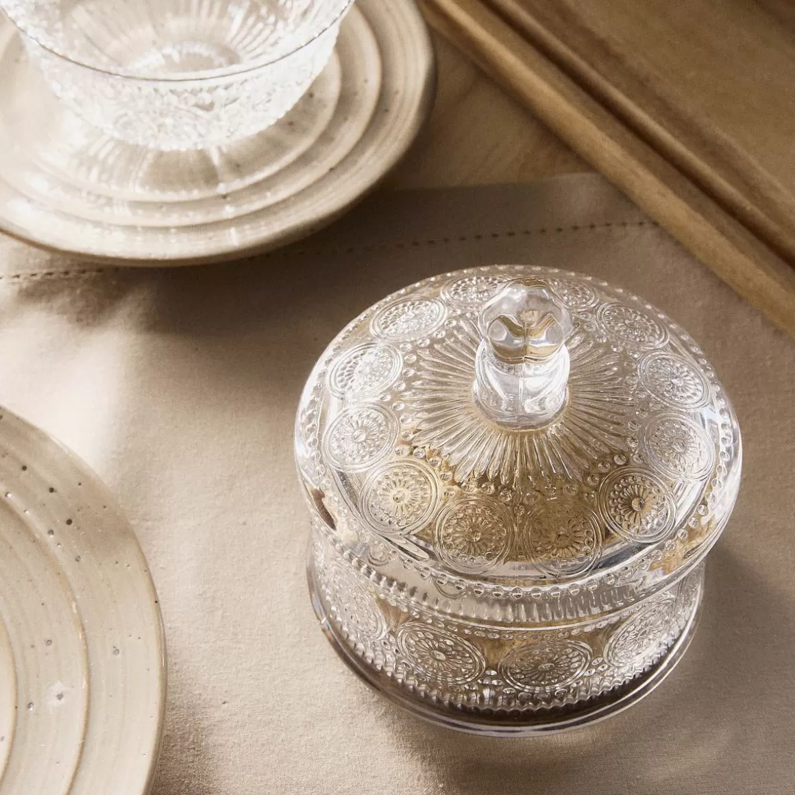 Opis ProduktuZamykany Pokrywą Z Wygodnym UchwytemPrzejrzyste Szkło Z Okazałymi ZdobieniamiDoskonale Prezentuje Się N…