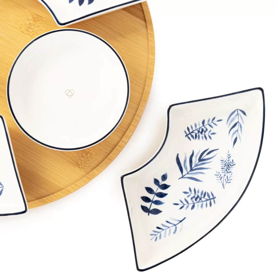 Opis Produktu5 Miseczek W KompleciePięknie Zdobiona PorcelanaObrotowa Taca Z BambusaPodwyższony Rant Tacy Dla Stabiliz…