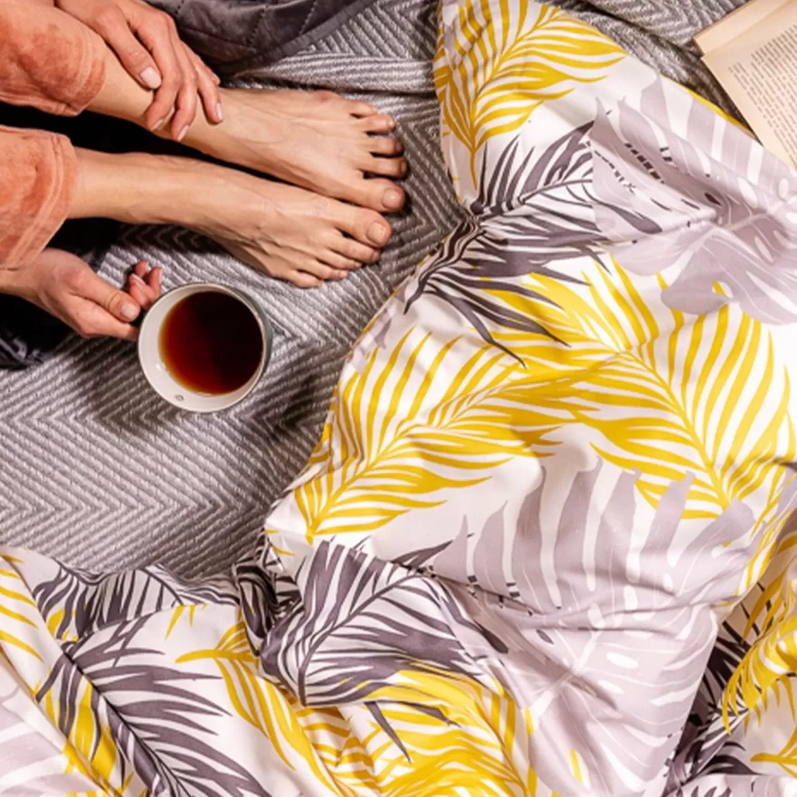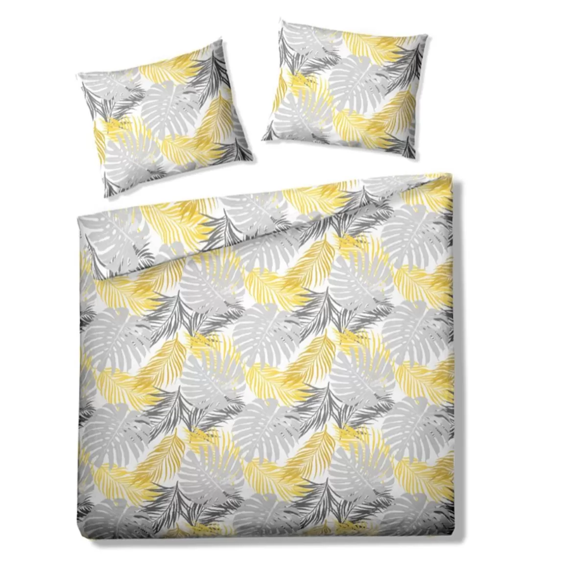 HOMLA Pościel Botanical Z Mikrofibry W Zolto-Szare Liscie 160X200 Cm