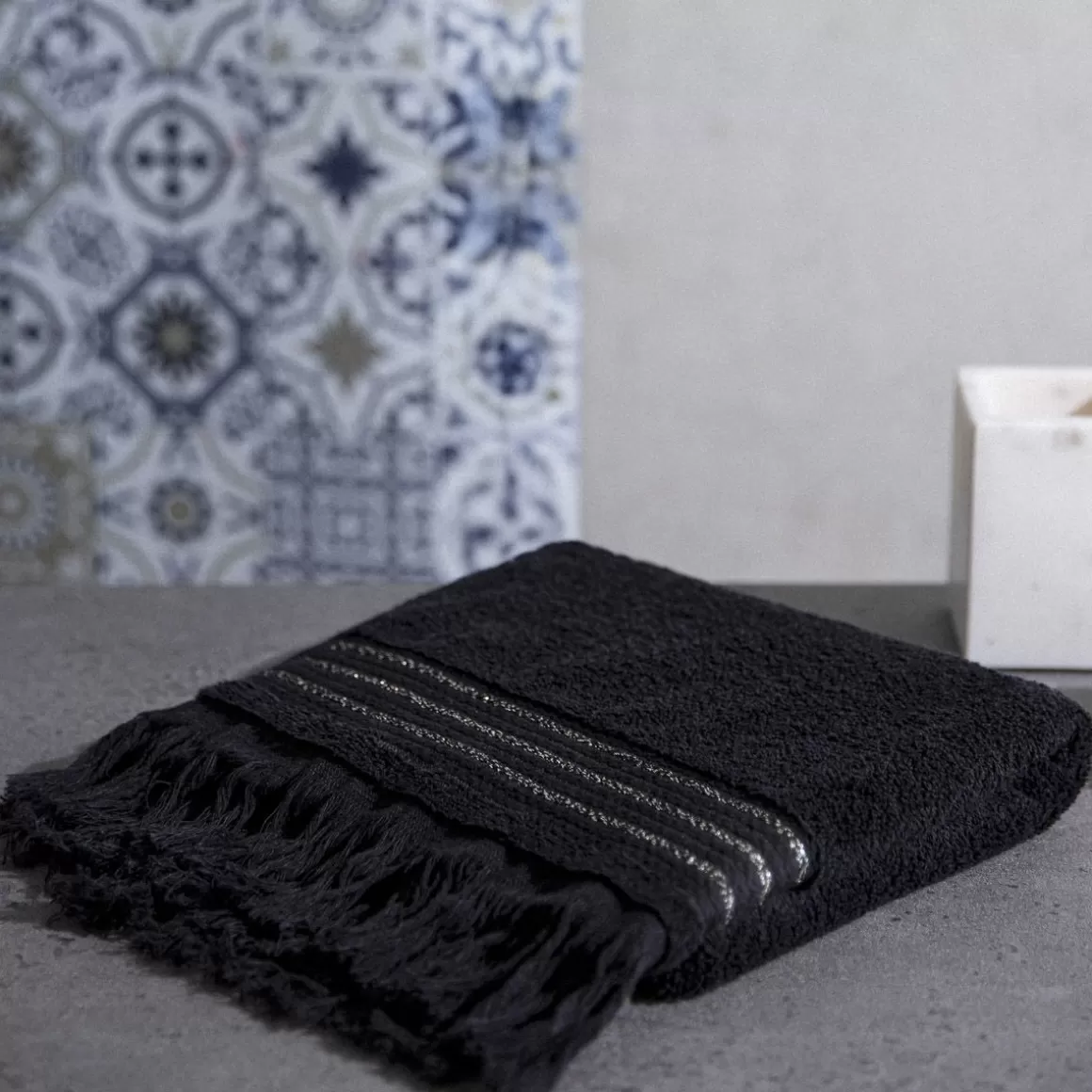 Opis ProduktuMiękka I Chłonna Bawełna Elegancki Czarny KolorOzdobne Wykończenie Wymiary: 50 X 90 CmBawełniany Ręcz…