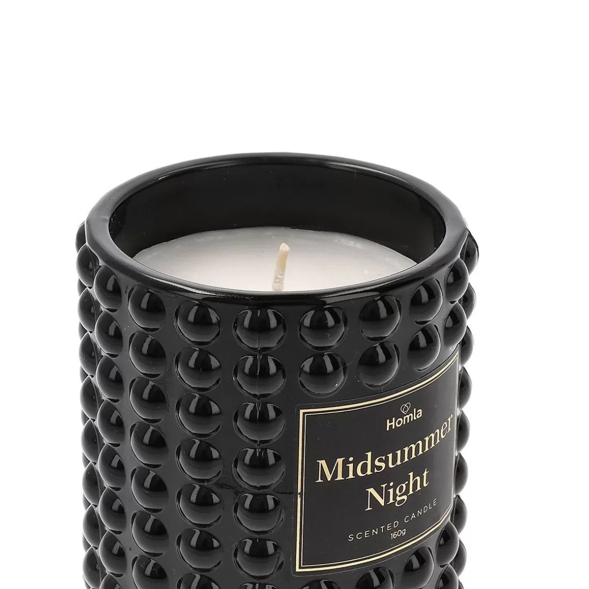 Świeca Zapachowa Midsummer Night To Kompozycja Aromatów Kojarzących Się Z Upalnym Latem. Biała Parafina Umieszczona Została W Szklanym, Czarnym Naczyńiu, Tłoczonym W Wyraźny Wzór Kropek. Ma Masę 160G I Kształt Walca O Wysokości 16Cm.Materiał