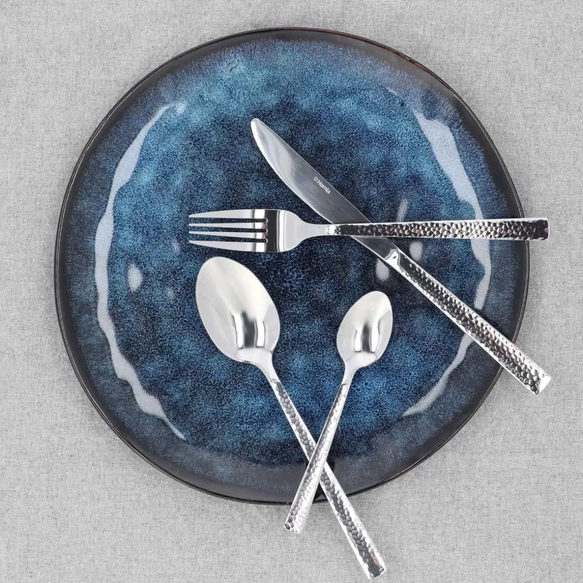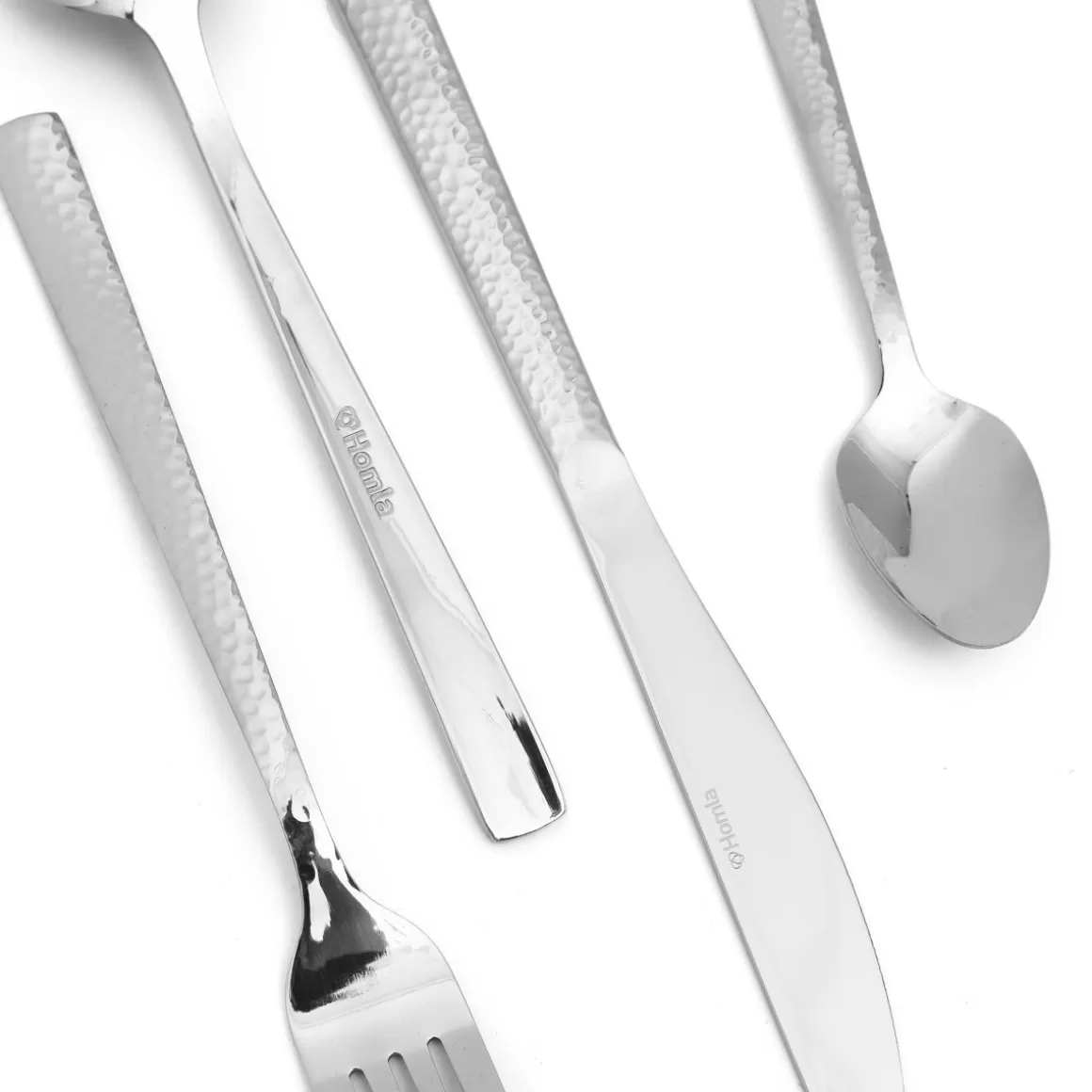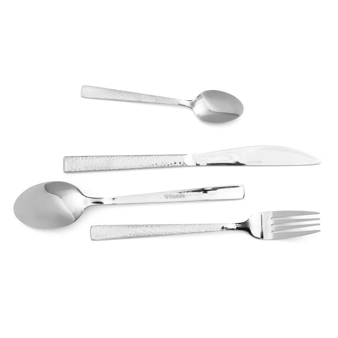 HOMLA Zestaw Sztućców Martello Z Mlotkowana Raczka Srebrne 24 Szt.